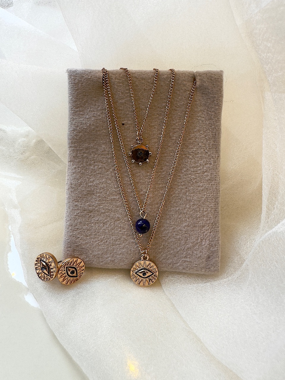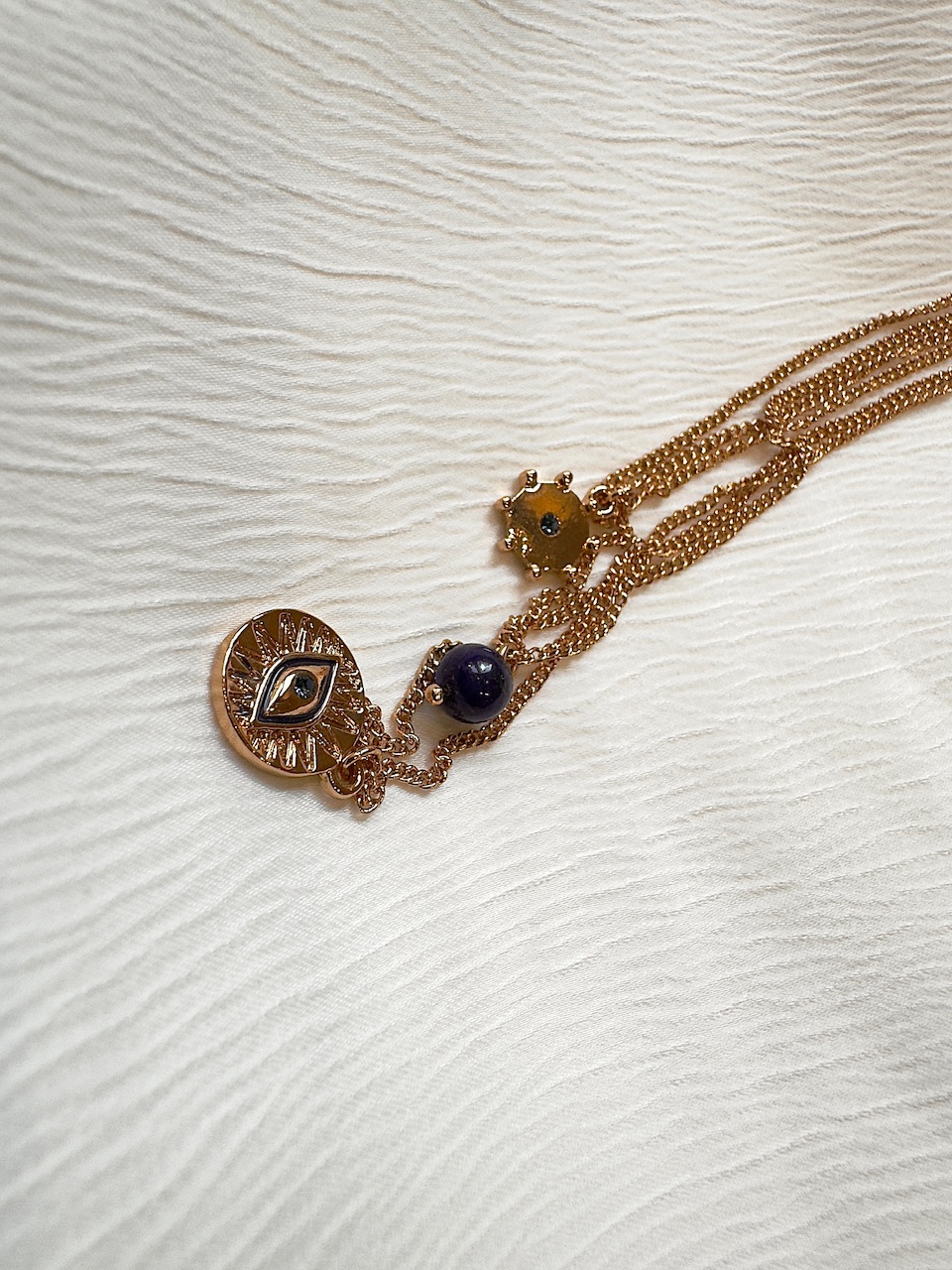 طول زنجیر ۳۰ سانت رنگ چشم نظر و گوشی و نگین آبی پررنگ میباشد